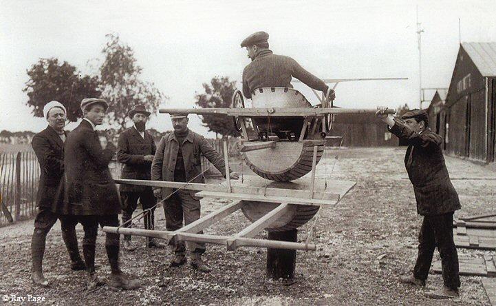 1910年前后,在英国和意⼤利开始出现了固定在地⾯上的⻜⾏训练器具。当有⻛吹来时,机身随之转动,机上⼈员操纵升降舵和⽅向舵 等活动部件,就可以获得与真实⻜⾏中相似的⽓动反应。如果没有⾜够强劲稳定的⻛⼒,这些“⻜机”就只能成为静⽌的摆设。