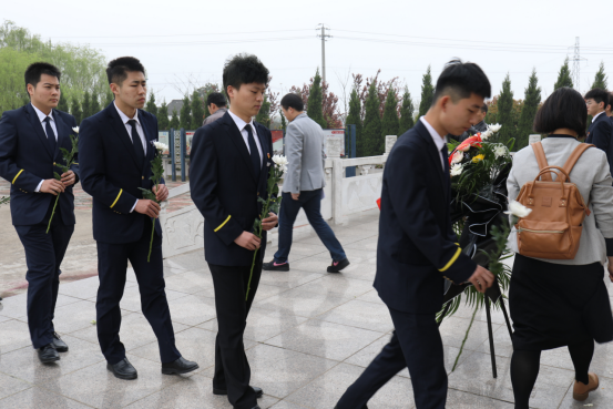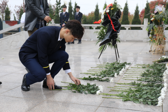 在烈士陵园纪念广场,大家深情瞻仰革命烈士纪念碑和烈士雕像,学院党委副书记贡海俊在烈士墓前宣读祭文,勉励同学。革命先烈为我们踏出一条社会主义的光明大道,为我们创造了今天的幸福生活,希望同学们继承革命先烈遗志,为中华民族伟大复兴,为民航强国发奋学习,做有担当的新时代的青年。