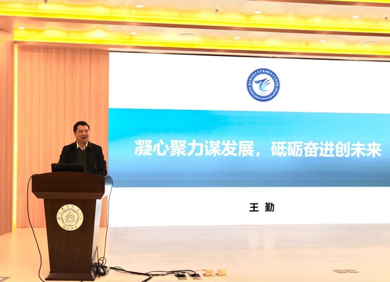 王勤院长以《凝心聚力谋发展,砥砺奋进创未来》为主题对2020年11月学院成立以来在党建工作、制度建设、人事工作、专业建设、教学科研、学生工作、招飞飞管、文化宣传8个方面的工作进行全面总结,对2021年度重点工作进行解读和布置。王勤表示,学院将在优化学科专业布局,科学编制发展规划;建立健全制度体系,切实提升治理效能;加强师资队伍建设,提升教学科研能力;主动强化政治担当,严格落实巡察整改等四方面着重发力。作为民航战略委员会成员单位之一,为做大做强民航特色发展,创建特色鲜明的世界一流大学贡献通飞人的力量!