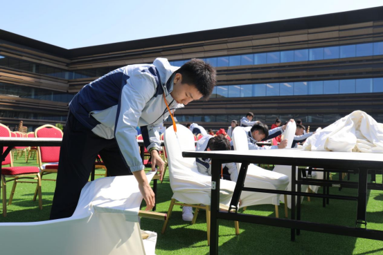 本次活动得到了学生们的广泛响应,招募消息一经发布,两小时志愿服务岗位全部报满。同学们说:“平时在学校学习,这一次能站上志愿服务的一线岗位,是种很不错的体验。”彩排期间,他们从早上8:00到晚上21:00,每名学生都是提前十五分钟到达工作岗位,连续工作13小时,负责为签字板、长桌搬运工作及巡逻、引导工作等。