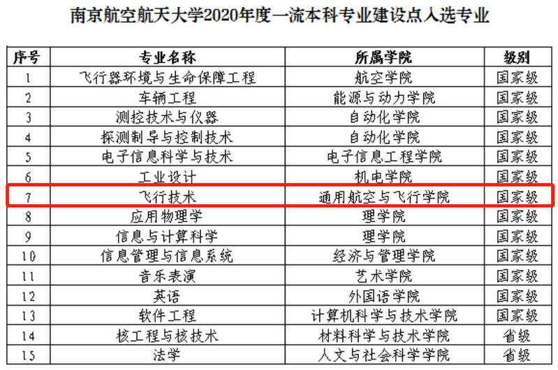 近日,教育部发布了《关于公布2020年度国家级和省级一流本科专业建设点名单的通知》(教高厅函〔2021〕7号),betway西汉姆联官网飞行技术专业入选国家级一流本科专业建设点。