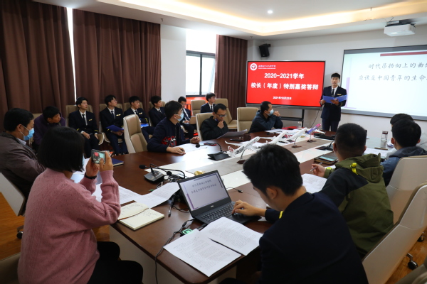 2021年10月22日,betway西汉姆联官网在综合服务楼408会议室开展2020-2021学年校长(年度)特别嘉奖答辩会。学院党委副书记魏慧冬、学院团委书记范伟以及学院辅导员出席本次答辩会并担任评委。