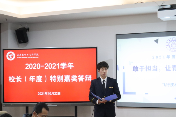 2019级张博昱同学围绕自己争做严于律己的奋进者、天目一期的开拓者、不负韶华的奉献者三个方面展开答辩。他平均绩点从4.0到4.7 ,单学期绩点更是打破专业历史记录。作为“飞行大队长”带领新校区第一批飞行学生共同进步,积极开展校地联动,点亮“天目一期”特色名片,深入藏族聚居区聚居区支教等,他以实际行动,践行南航飞行学子的担当。