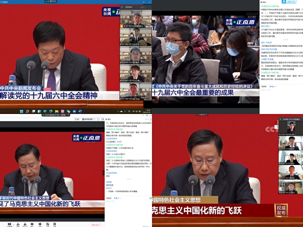 11月12日上午10时,中共中央就党的十九届六中全会精神举行新闻发布会。通飞师生热切关注大会的召开,积极学习会议精神。