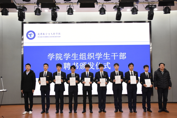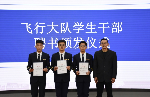聘书颁发仪式后,飞行大队学生干部代表山长磊同学、学院团委学生干部代表曾天翼同学、纠察队学生干部代表张世豪同学、飞行中队学生干部代表吕晗艺同学依次发言表示将不忘全心全意为同学服务的初心,真正深入同学之中,发挥好桥梁纽带作用,让青春在奉献中焕发绚丽光彩。