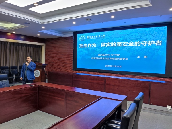 2021年12月23日下午,betway西汉姆联官网院长王勤在江宁校区一号楼10527会议室讲授了题为“担当作为 做实验室安全的守护者”的专题党课,此次党课由飞行系支部书记陈大伟主持,飞行系党支部全体党员参加了此次党课。