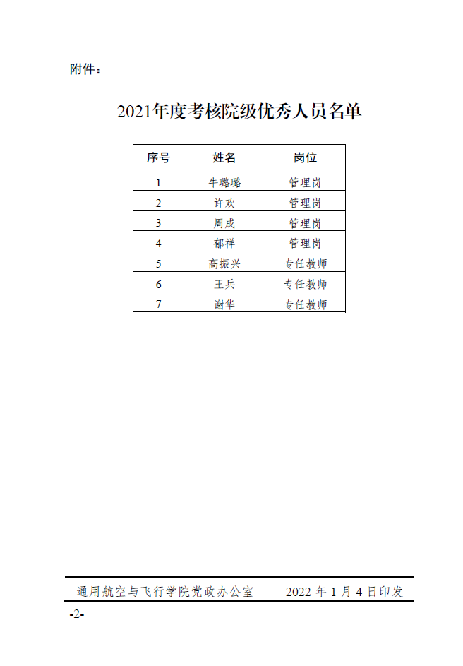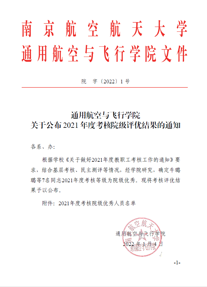 [院字〔2022〕1号]关于公布2021年度考核院级评优结果的通知