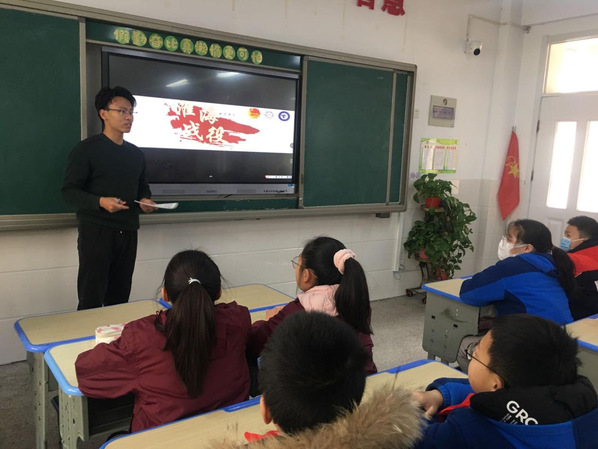 学院2021级本科生梁智尧、黄奕嘉、何知墨,胡艺昊四名同学组成“缅怀革命烈士,弘扬百年团史”团队,带领徐州市云兴小学的学生们参观了淮海战役纪念塔和孤山烈士林园,向小同学们宣扬革命先辈顽强拼搏、勤俭节约、艰苦奋斗的宝贵精神,为小同学们夯实精神之基,树立思想灯塔。同时,团队成员还走进课堂向小同学们讲述党史团史,并邀请小同学们写下自己的感悟和反思。