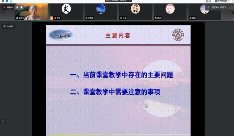 唐正飞结合教学督导组在随堂听课和教学评估中的相关工作经验,就青年教师在课堂教学中的内容安排、基本教学方法、数字化多媒体的应用、线上和线下授课与学生的交流方法、课堂教学中注意事项等与学院青年教师和骨干教师进行分享。