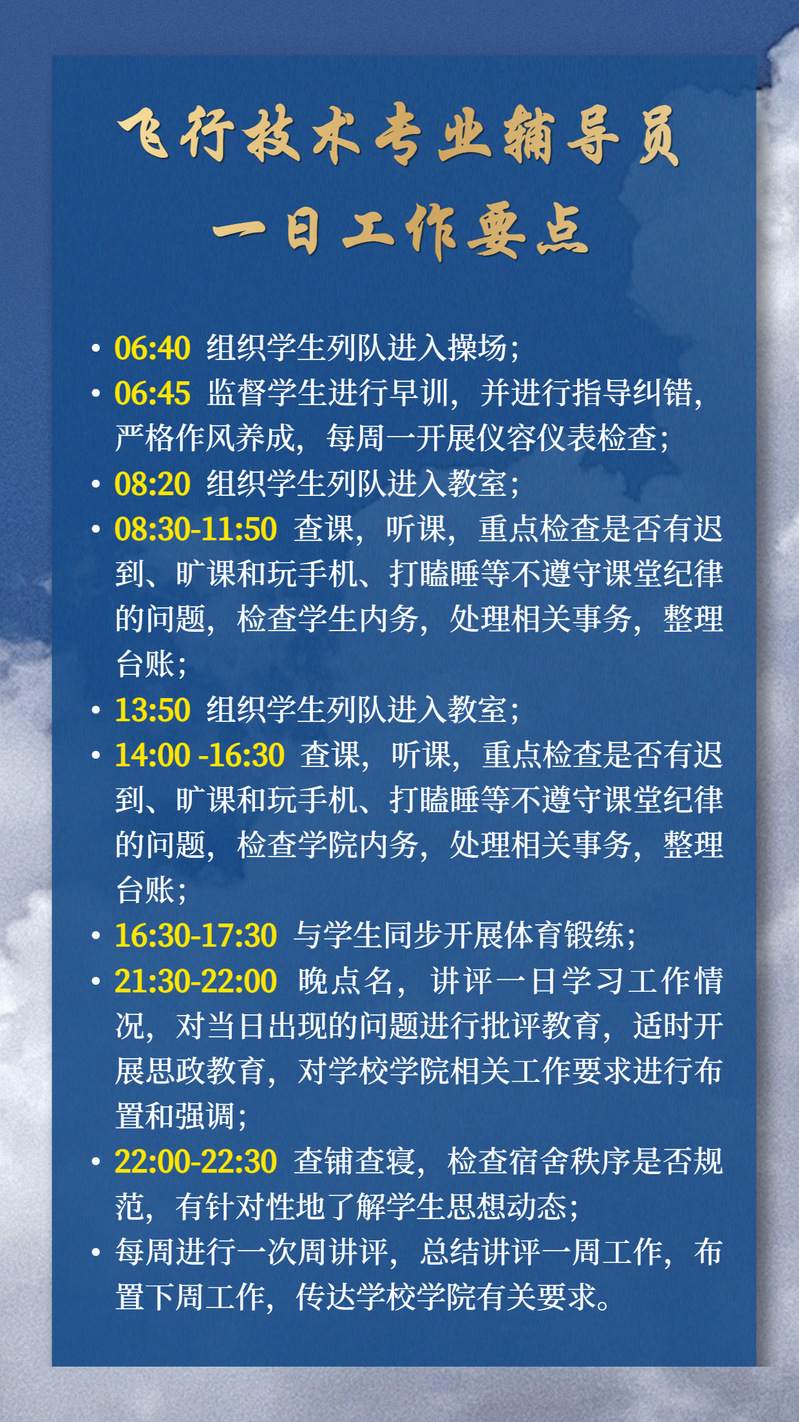 飞行技术专业辅导员一日工作要点