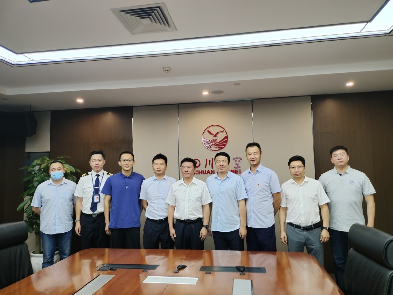 在四川航空股份有限公司,学院考察团首先参观了四川航空企业文化馆,沉浸式感受川航开航34周年以来艰苦创业的光荣历程。座谈会上,四川航空总飞行师王兴华对考察团的到来表示热烈欢迎,同时表示双方在人才培养、校企合作等方面已达成多项共识。飞行技术管理部综合室业务管理员陈科宇首先介绍了四川航空飞行学员管理模式及要求,随后高健介绍了南航大通飞学院建设发展及飞行人才培养情况,希望挖掘更多的校企合作的形式。随后双方就“飞行员全生命周期管理”、“飞行学员思想作风建设”等方面进行了深入交流。最后王兴华高度认可历年来南航大培养的人才质量,各部门中均不乏南航大校友的身影。同时也希望建立常态化的交流机制,就飞行人才培养方面进一步加强加深合作。