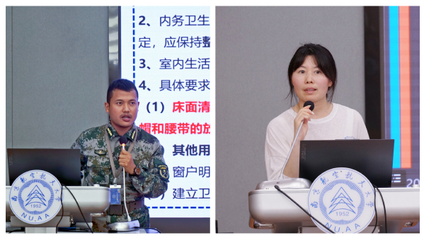 陆海林围绕军训作息时间安排、军训规章制度、军事课教学管理规定等方面详细讲解了军训工作计划安排。柳小营详细讲解了军训期间的卫生安全知识和注意事项,特别分享了突发事件处置方法和一些军训小技巧小贴士。
