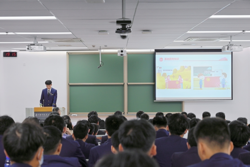 2021级团总支书记黄子航围绕共青团的使命与性质,团徽团旗团歌使用规范及“三会两制一课”制度进行讲解。带领各位团干部明确自身使命,规范各项要求,着重强调了“三会两制一课”制度的意义,向新任团干部展示了基础团务工作的重要性。