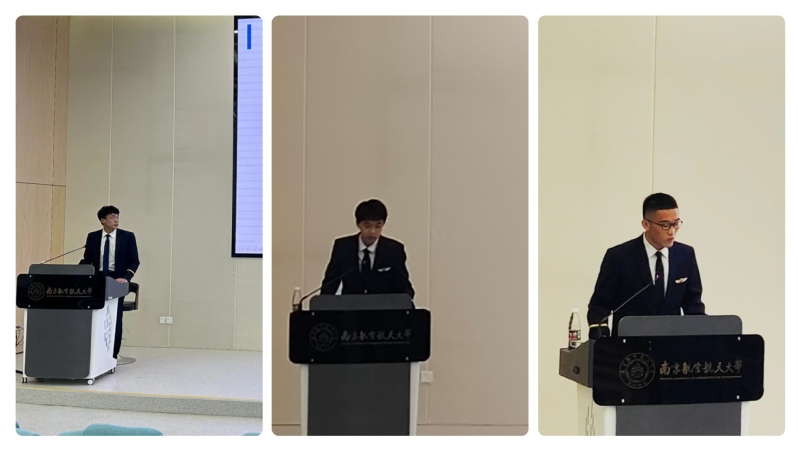 随后,南京航空航天大学模拟飞行队的杨宵、宋文洋和李羽翰三位同学分别对本次大赛的比赛项目,包括VOR/DME进近、ILS进近、本场五边飞行、无动力着陆、SU-33航母降落,进行了详细介绍。