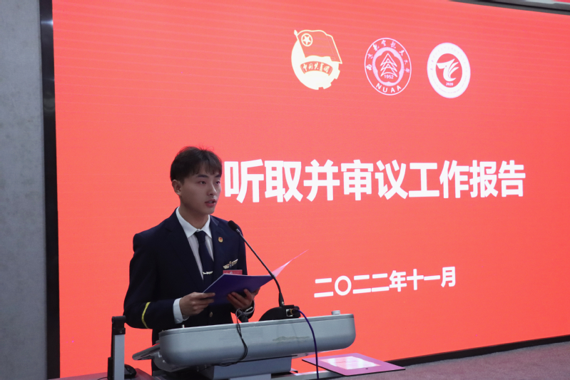 会议听取并审议了麻栩铭作的题为《风劲帆满图新志,逐梦蓝天正当时,团结学院全体同学守正创新追卓越,勇毅前行赴未来》的工作报告。报告从“引领青年向上”、“营造学院特色”、“强化学生管理”、“助力全面发展”四个方面回顾了过去一年我院学生会取得的主要成绩。