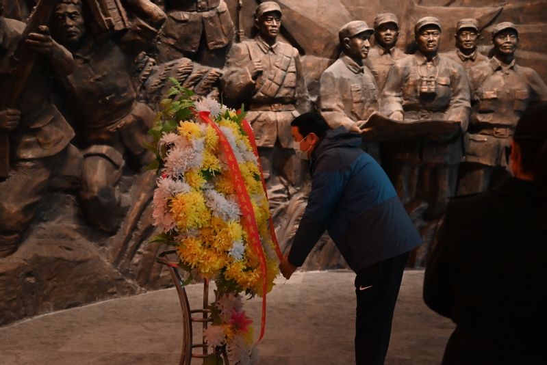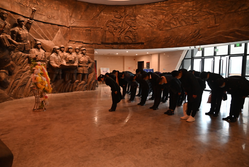 全体人员整齐肃立,向革命先烈行三鞠躬礼。