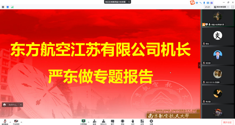 12月23日,为丰富同学们的返乡后的学习生活,拓宽同学们的学习视野,betway西汉姆联官网在线开展飞行技术专题讲座,邀请我校校友、东方航空江苏有限公司机长教员严东以《飞行成长记》为题的专业讲座。学院飞行技术2021级卓越班本科生、部分教师参加了本次活动。讲座由飞行技术系主任高振兴主持。