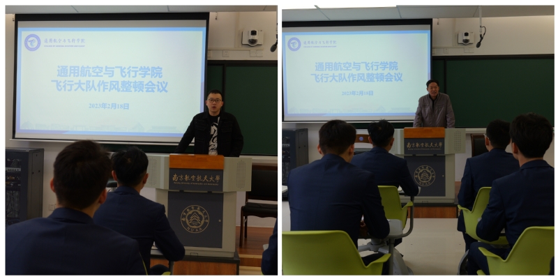 飞行技术专业辅导员分别召开中队会通报了负面典型案例,传达了学院关于飞行学员准军事化管理工作的相关要求,强调了优良作风的养成对于飞行学员的重要性。