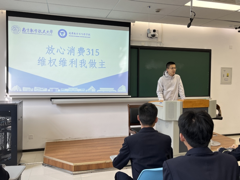 辅导员王宇彬向同学们普及了“3·15”国际消费者权益日设立的目的和意义,介绍了消费者合理维权的途经和方法,就同学们关心的网络购物维权、校园贷、霸王条款等热点问题进行了讲解。他呼吁同学们养成健康的消费习惯,采取正确的方式维护合法权益。
