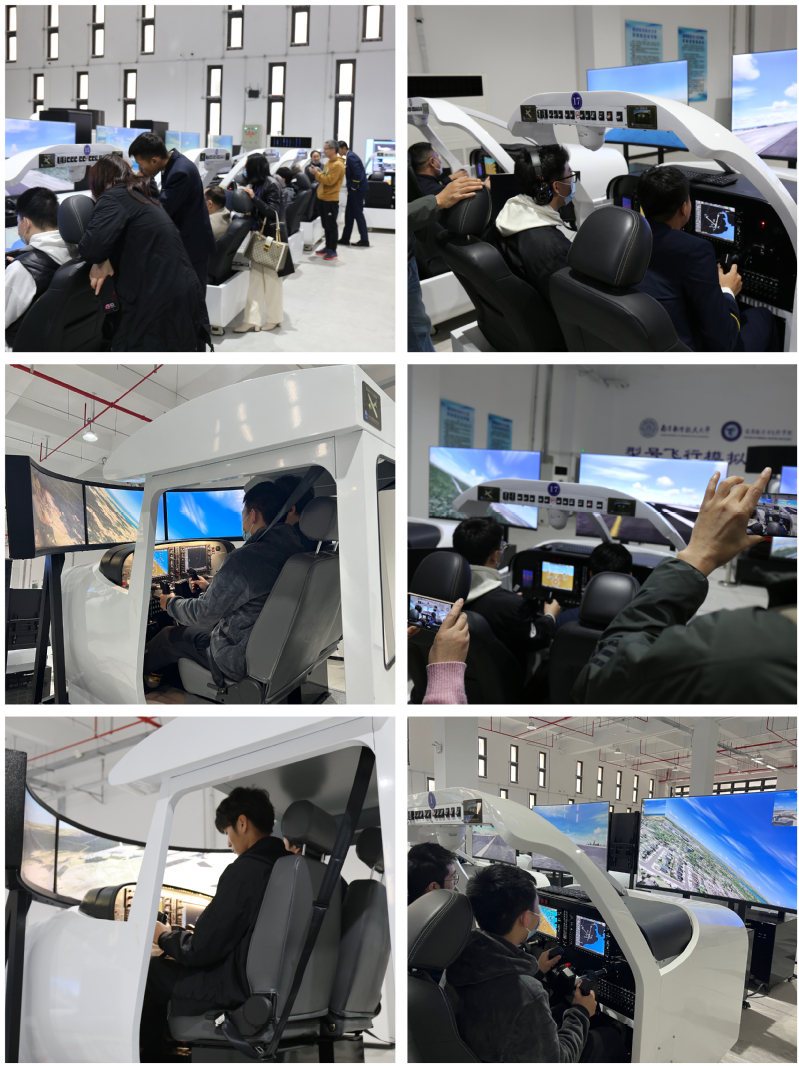 在型号飞行模拟实验室,学生体验了塞斯纳、钻石、PA等国内外多种常用的初教机模拟机,加深了对民航飞行的认知。