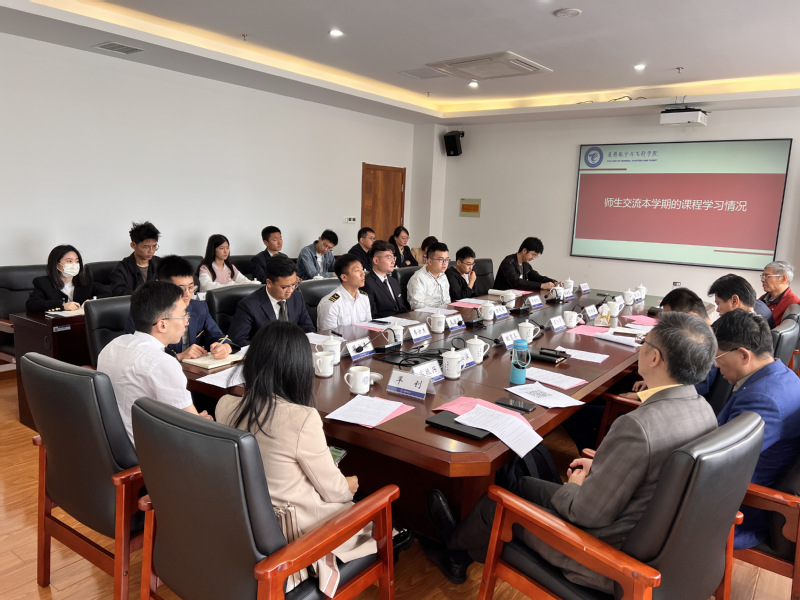 第一环节是师生交流本学期的课程学习情况。与会学生代表对课堂教学、专业建设、就业前景、教学场地、科研设备等方面提出了问题和建议。飞行技术专业负责人丁松滨、交通运输(民航机务工程)专业负责人陈果、飞行技术系黄幼、安全工程系王海飞就同学们提出的问题予以耐心解答,魏慧冬对学生作风建设和学生管理规章制度方面问题和学生进行交流,张洪海就研究生专业学习、科研项目、行业实践等进行了介绍。