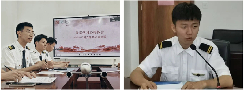 中国民航大学飞行分校20134117团支部书记陈渤霖、betway西汉姆联官网2021级团总支书记陈衍甫结合自身学习成长经历,分别围绕思想引领、理论学习、班团建设等方面分享了自身心得体会,认为飞行学生应该把爱国之情、强国之志、报国之行融入到党和国家事业发展之中,练就过硬本领,养成优良作风,努力成为“一专多能”的民航高素质飞行人才。