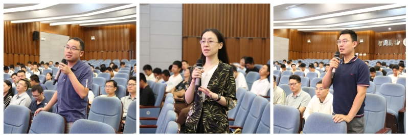 在交流环节,参会教师、学生积极提问,胡仁杰教授就实验教学的课程目标制定、课程内容设计和教师科研能力提升等主题与现场教师进行探讨,分享了关于实验教学建设、专创融合的心得体会。