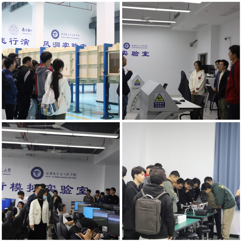 全体研究生在蔡中长的带领下,先后参观了飞行演示风洞实验室、飞行人因CRM实验室、初级飞行模拟实验室、飞行特情虚拟仿真实验室、无人机运行管控大学生主题创新区实验室、型号飞行模拟实验室。在每一个实验室,蔡中长都进行了全面生动的讲解。他详细介绍了各项实验仪器与设备的使用方法、注意事项以及相应的应用场景。研究生们围绕技术原理和项目应用进行了交流和研讨。在初级飞行模拟实验室,研究生们还与在场备赛的飞行学生进行了交流,沉浸式体验了模拟飞行的魅力,进一步加深了对飞行的认识。