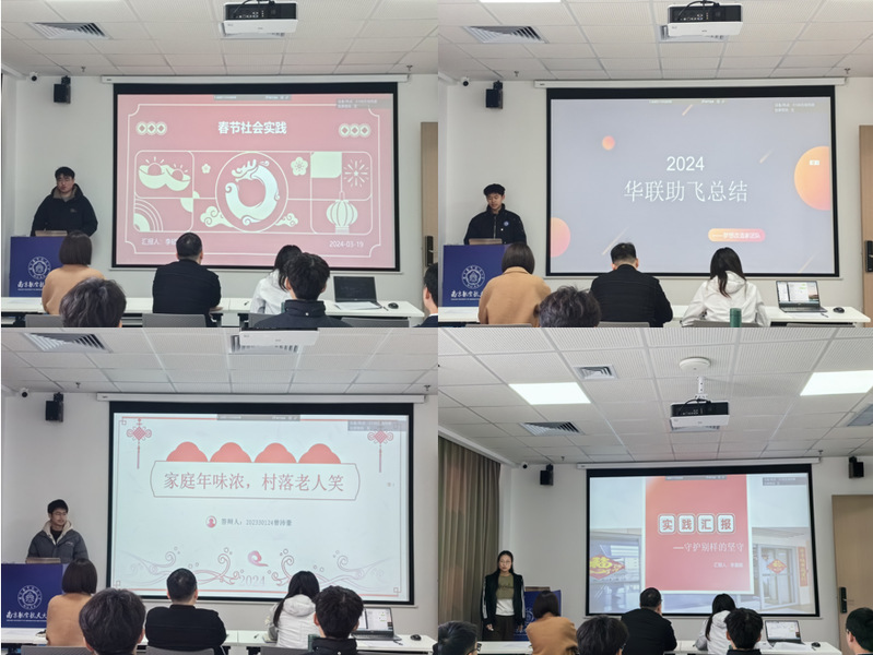10名立项学生以“春节温暖特别行动”为主题,依次进行了汇报展示。他们聚焦医护人员、环卫工人、留守老人等不同群体,深入社会,积极奉献,在社会服务中挺膺担当、贡献力量。李童越聚焦关怀医护人员,以“守护别样的坚守”为主题,开展了慰问医护人员、“祝福送出角”等多项服务,为医护人员送祝福、送温暖,传递了回馈社会的正能量。李硕硕在深入了解春节习俗、亲身感受传统文化魅力的同时,关注乡镇孤寡老人这一群体,以实际行动为他们送去温暖,展现了南航学子热心公益、勇于担当的风貌。