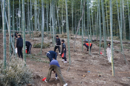 党支部的同学们也拿起锄头、走进泥泞的竹林里从事劳动生产,亲身体验了当地农民在深山里劳作的艰辛,也收获了劳动的喜悦。