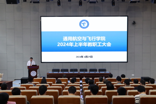王勤以《启航新征程 实干谱新篇》为题,从党建工作、教学工作、学科科研、队伍建设、人才培养、治理能力和培训工作七个方面对2023年工作进行了总结,并对2024年学院重点工作进行了部署。他表示,青年教师应积极主动融入行业、融入团队,潜心科研、把握机遇,机关工作人员应切实提高工作能力,持续改进工作作风,共同推进学院内涵式高质量发展。他强调,2024年全体教职工要以更加饱满的热情、更加昂扬的斗志、更加务实的作风、更加高效的服务助力学校高质量、系统性、国际化发展,为全面建设航空航天民航特色鲜明的世界一流大学注入通飞力量。