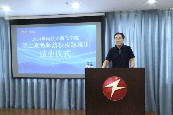 崔海涛对福航航院的支持表示衷心的感谢,并向结业的老师表示祝贺。他表示,南京航空航天大学始终将人才工作作为学校发展的重要引擎,暑期教师航校实践这一教师发展品牌活动有效地支持了教师成长,也期望教师们在教学当中享受乐趣,在亲身实践之中不断提升育人本领。