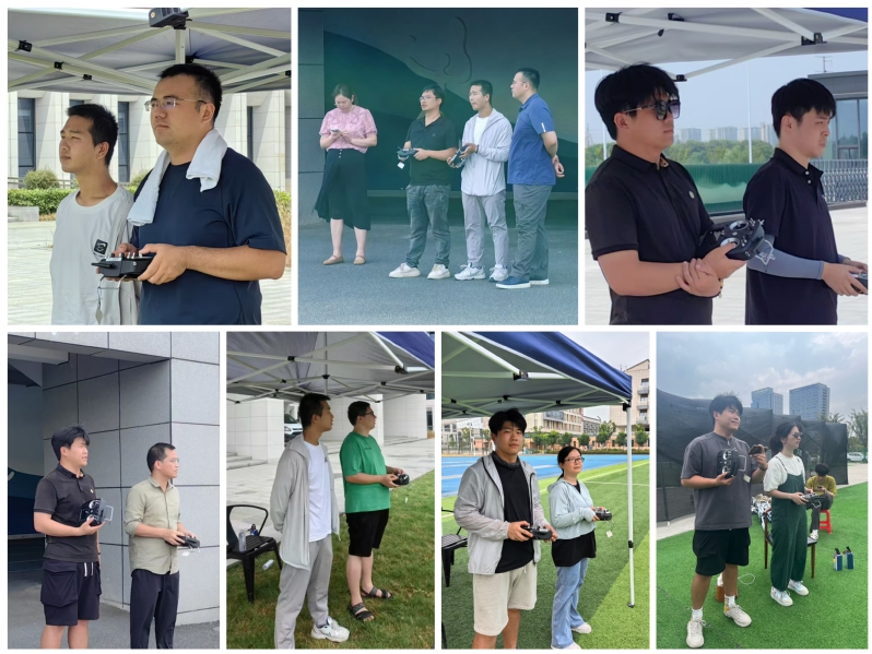 培训期间,教师们在四十多度的高温下顶着烈日进行实操训练,并在雷暴天气中坚持学习和操作。部分教师甚至在生病的情况下,依然积极参与培训,表现出了顽强的意志和对专业技能提升的高度重视。在天目湖校区的8天实操训练中,教师们系统学习了无人机悬停、慢速水平360°飞行、水平8字飞行、定点降落等多项操作技能。