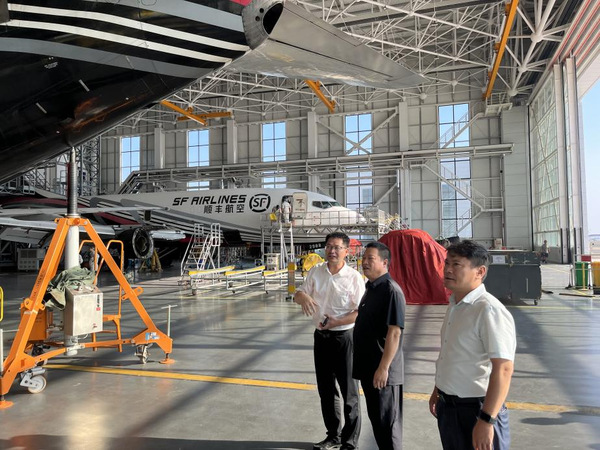 会后,培训部总经理曹晓林带领王勤一行参观了维修机库,详细介绍了各个部门的功能及职责。