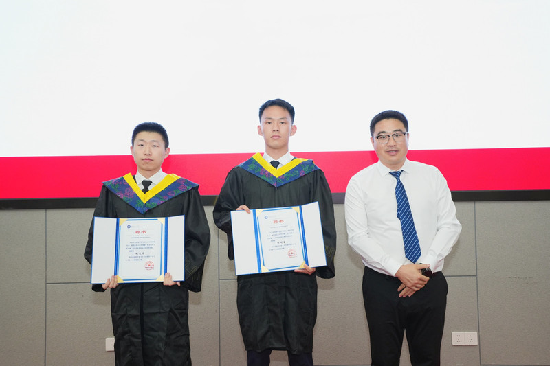 张炜、贡海俊为学院优秀毕业生颁发荣誉证书。