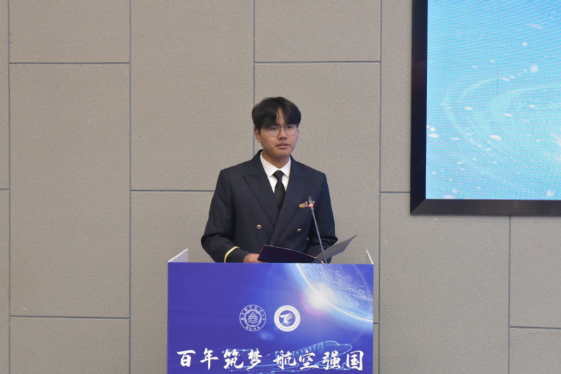 周伯华作为获奖学生代表发言,他首先对学院领导的深切关怀与坚定支持、指导老师的悉心指导与无私奉献表示感谢,通过分享自己训练备赛的心路历程,表达了对模拟飞行的热爱,回顾了同学们比赛过程中团结协作、拼搏进取的精彩瞬间,总结了本次比赛成功的经验。他倡议同学们未来继续发扬团结奋进的精神,保持谦逊谨慎的态度,坚实走好飞行生涯的每一步。