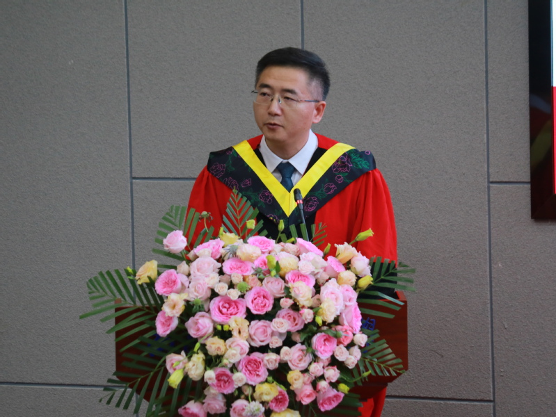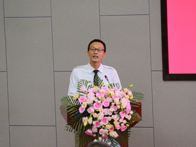 高振兴作为教师代表发言,他回顾了同学们的学习阶段,梳理了未来职业发展历程,他期待同学们发挥一流大学培养的平台优势,砥砺前行,奋楫逐浪,从飞行学员顺利地成长为合格的运输航空飞行员,成为能飞、善飞、懂飞、精飞的专家型飞行员,成为航空公司、局方的高级专家,为飞行安全保障和中国民航飞行事业贡献力量。