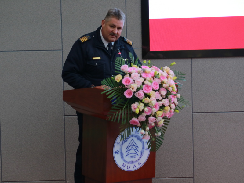 Johan作为航校代表发言,他表示本届毕业生中有很多同学在南非艾维航校完成实训,乐观上进、刻苦训练,为将来的职业生涯打下了坚实的基础,他希望同学们保持积极的态度,勇于探索和实践,不断提高自己的综合素质与核心竞争力。