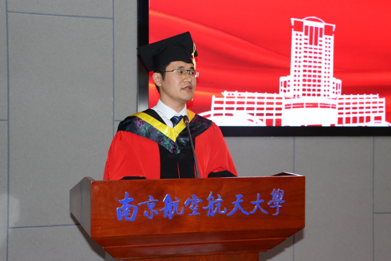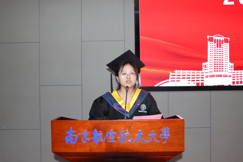 任梦梦作为学院优秀毕业生代表发言,她代表全体毕业生向学校、学院、老师、家人和同学致以最诚挚的感谢,她表示将谨记在南航的成长与蜕变,怀揣热爱,逐梦青春。