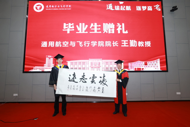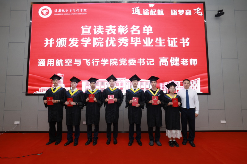 高健宣读学院优秀毕业生表彰名单,他强调飞行安全是民航业的根基,飞行员作为国家航空运输体系安全高效运行的中坚力量,责任重大;民航维修工程与民航机务工程专业的学子,是守护航空安全防线、推动民航制造业高质量发展的重要保障,使命光荣。他希望同学们始终牢记学院的教诲,保持对专业的热爱与敬畏之心,以严谨态度和专业素养深耕钻研,在各自的岗位上发光发热,积极响应国家战略需求,为我国的民航事业添砖加瓦、再立新功,为早日实现中华民族伟大复兴的中国梦贡献自己的青春和力量!