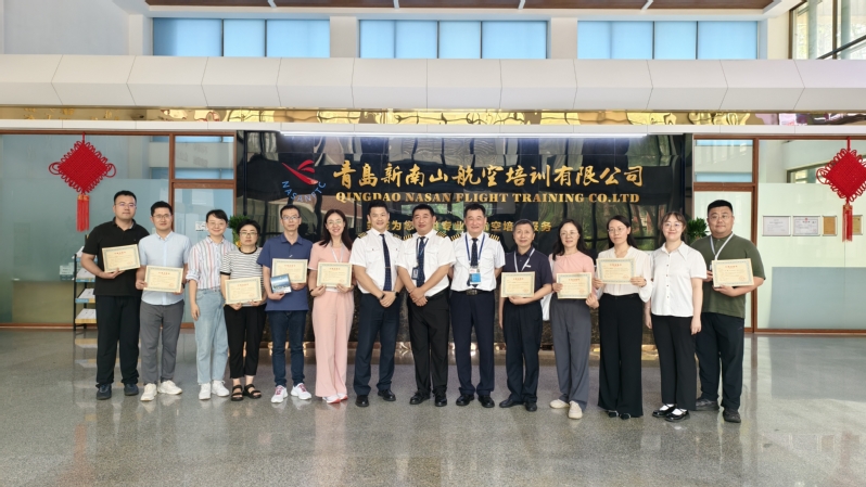 教师发展与教学评估中心副主任杨兰芳和通飞学院副院长司海青带队前往青培中心,民航华东地区管理局青岛监管局副局长李章县,青岛新南山航空培训有限公司总经理车九妹、副总经理国徽以及青培中心飞行教员代表为通飞学院参训教师举行了开班仪式,明确了培训目的、培训内容、培训要求和安全纪律等。