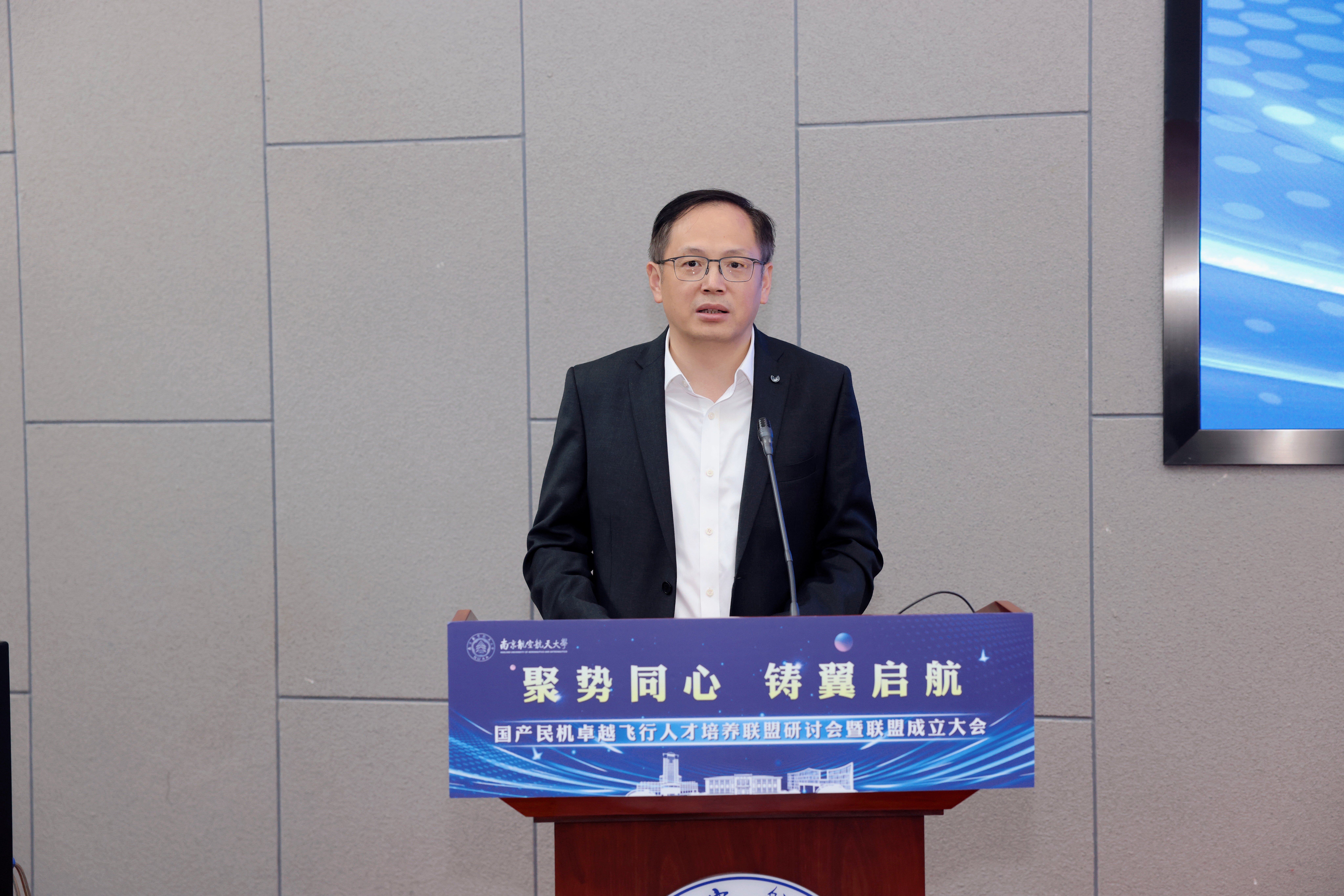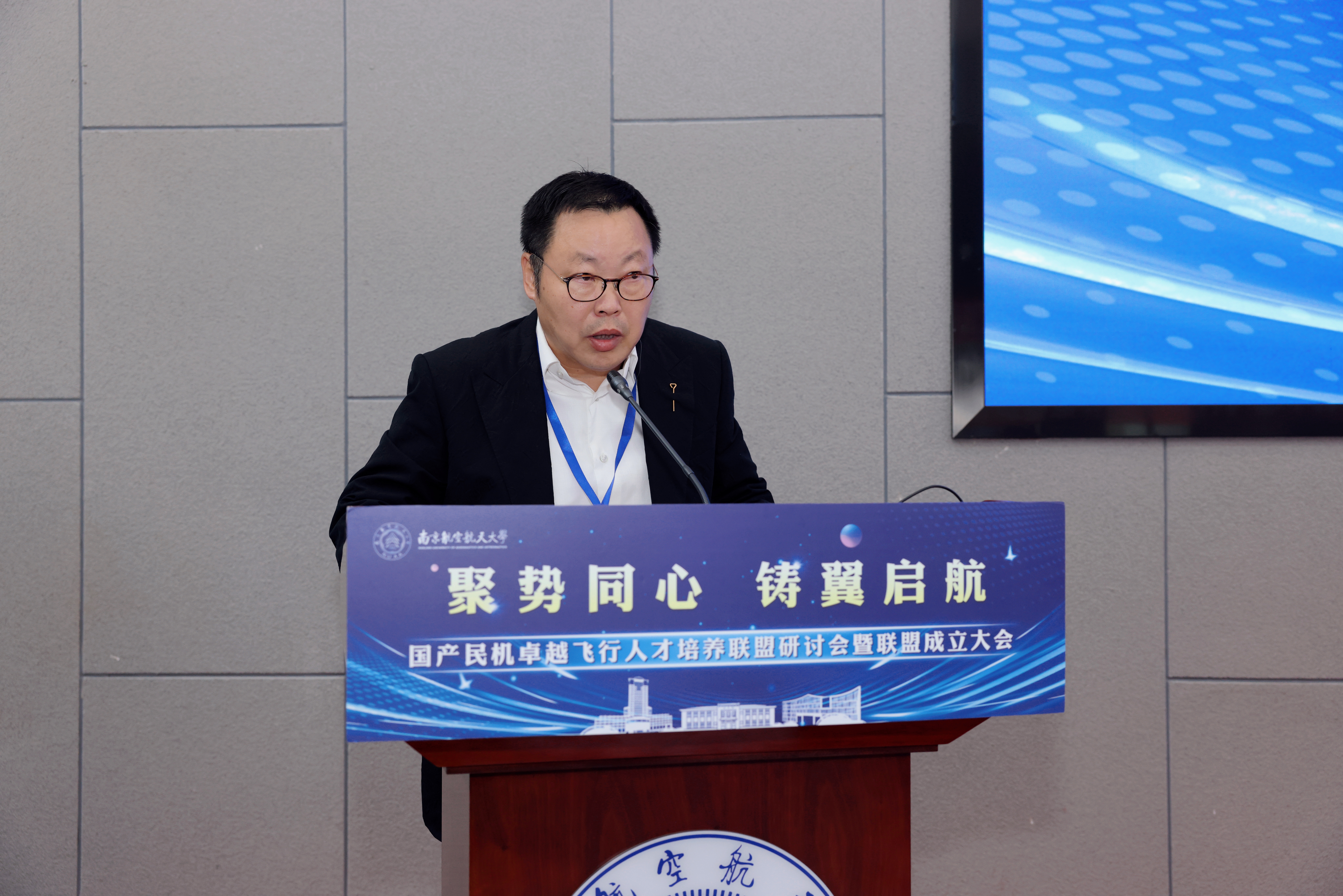 张启钱代表学校作大会致辞。他向民航局方、航空公司以及兄弟院校长期以来对学校建设发展的关心支持表示感谢。他指出,南京航空航天大学作为最早开设飞行技术专业的211高校,已为中国民航培养了8000余名高素质飞行员,成为我国运输航空飞行人才培养的重要基地。当前,中国民航正处于从“民航大国”向“民航强国”迈进的关键阶段,成立国产民机卓越飞行人才培养联盟,旨在汇集行业优势资源和各方力量,凝练卓越飞行人才培养的新理念新标准,积极探索校企产教融合、深度协同的培养新模式新路径,为我国民机事业自主化、规模化、国际化发展提供坚实、可靠的一流飞行人才支撑。