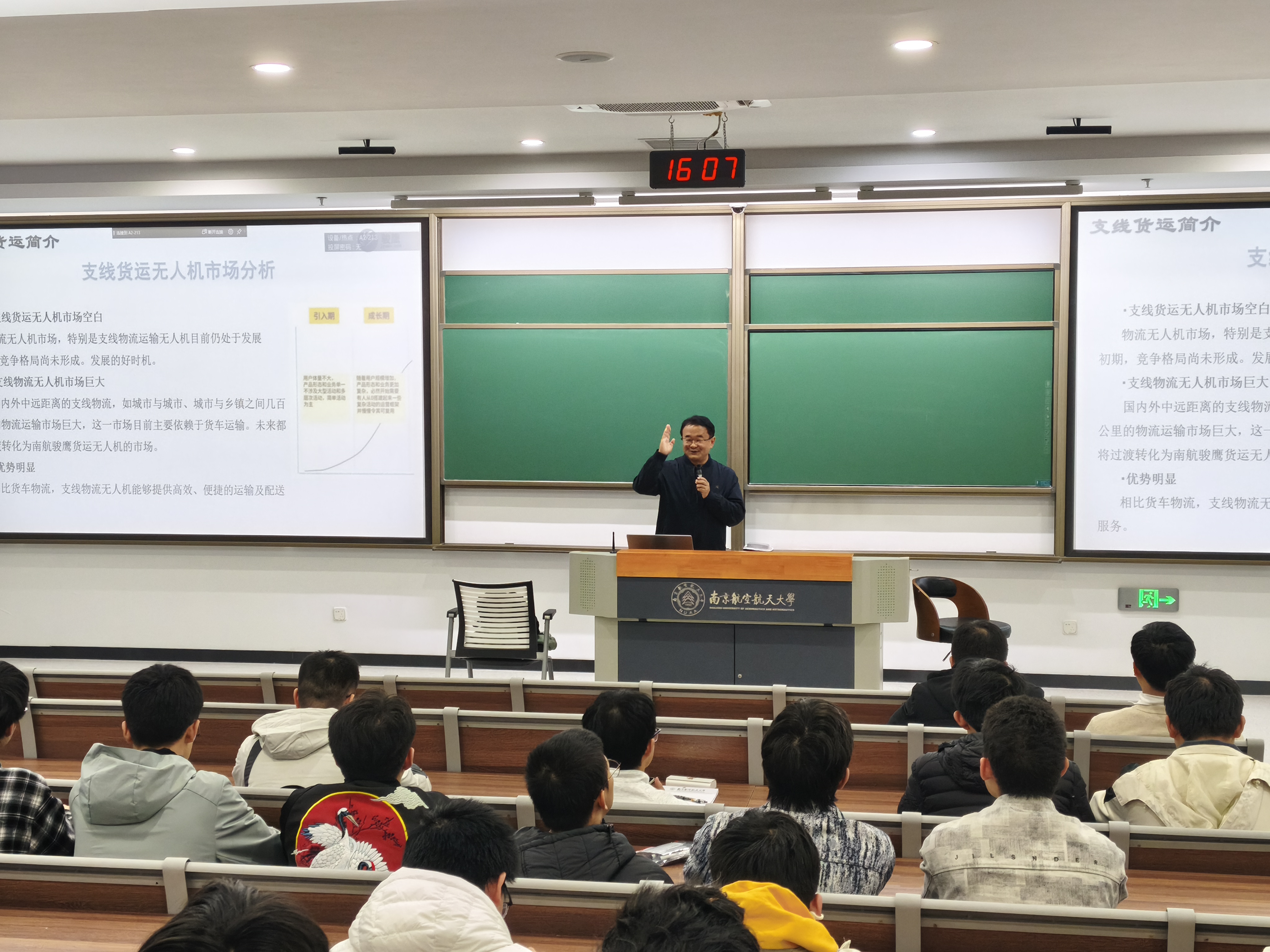 为深化本科新生对低空经济领域前沿技术的认知,搭建校企协同育人桥梁,12月2日,betway西汉姆联官网邀请云南骏鹰航空科技有限公司创始人殷健茗,为无人驾驶航空器系统工程和低空技术与工程专业本科生带来题为“支线货运无人机设计”的专题讲座。讲座在天目湖校区T2213教室举行,学院相关专业师生共同参与。