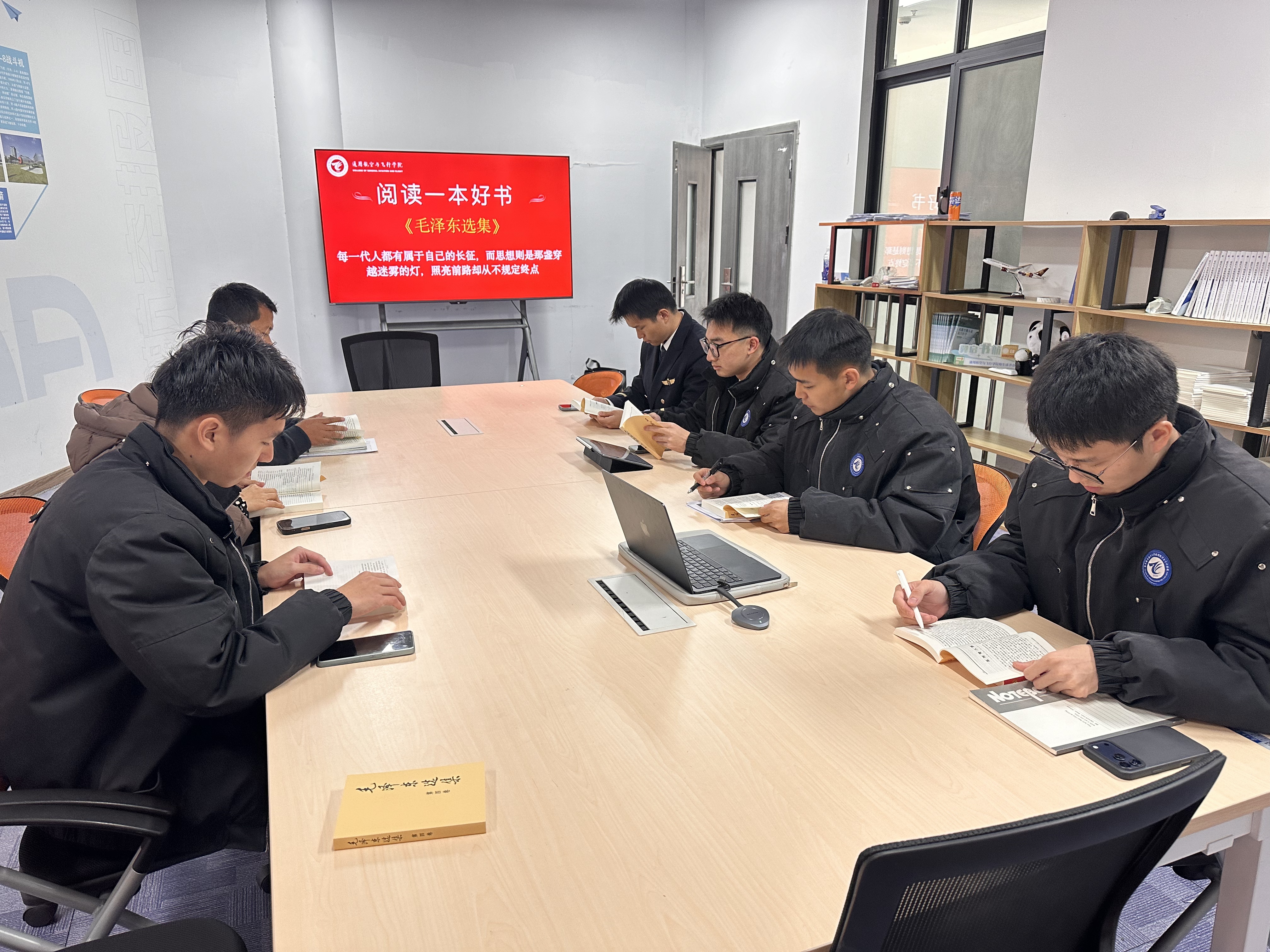 支部成员积极展开交流研讨。与会师生围绕“青年如何树立远大理想”“理论学习如何联系飞行实践”“如何在日常学习中培养斗争精神和奋斗品格”等议题踊跃发言,结合《毛泽东选集》中的具体篇章与自身经历,分享阅读心得与思考。大家一致认为,通过这种“领学+共学+研讨”的形式,不仅加深了对毛泽东思想的理解,也进一步明确了新时代飞行学子所肩负的责任与使命。
